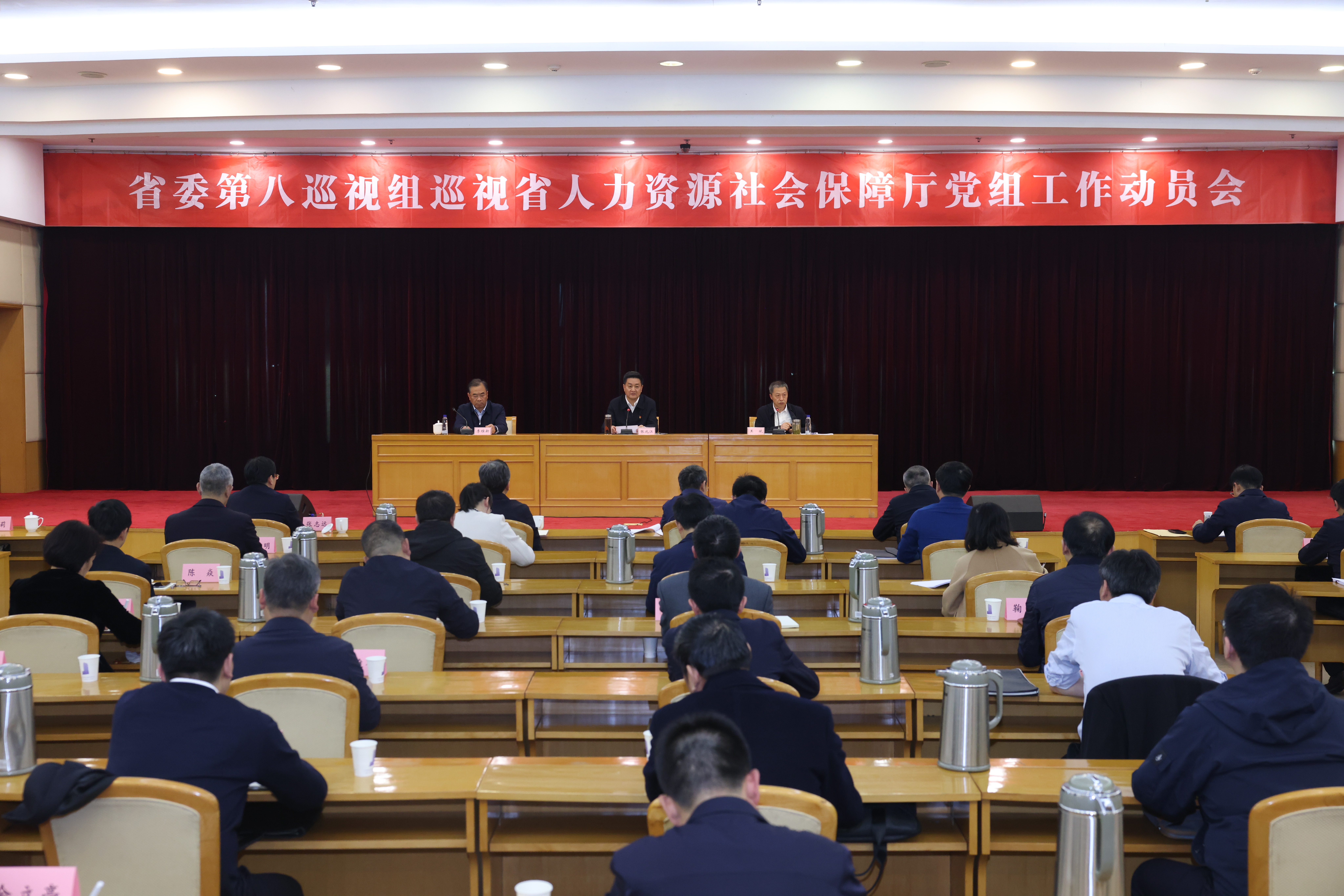 根据省委关于巡视工作的统一部署,2024年3月29日,省委第八巡视组巡视省人力资源和社会保障厅党组工作动员会召开。省委第八巡视组组长张兆江作了动员讲话,对深入学习贯彻习近平总书记关于党的自我革命的重要思想和关于巡视工作的重要论述,扎实开展巡视工作提出要求。省人力资源和社会保障厅党组书记、厅长王斌主持会议并作表态发言。
