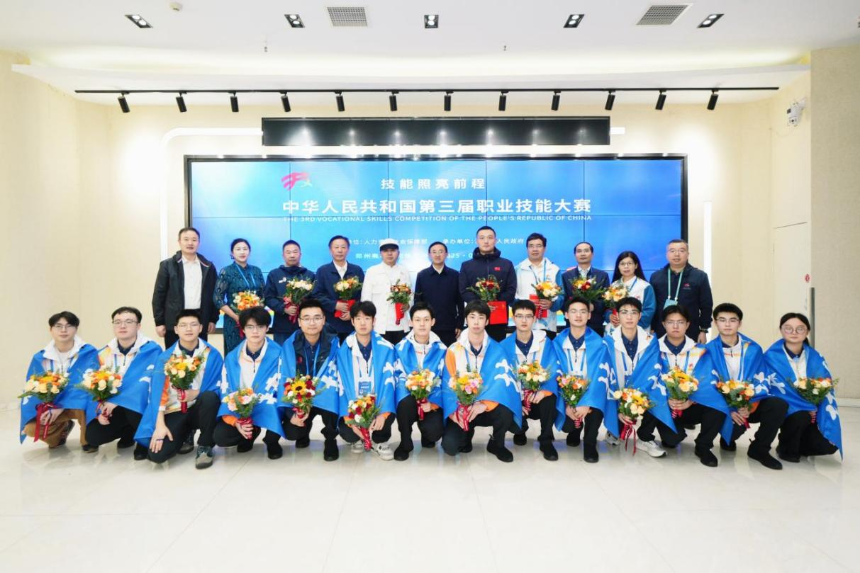 2025年9月19日至23日,第三届全国技能大赛在河南郑州举办。国务委员谌贻琴、人社部部长王晓萍、副部长颜清辉等领导分别出席开闭幕式。全国技能大赛是我国赛事规格最高、竞赛项目最多、参赛规模最大、技能水平最高、影响范围最广的综合性国家职业技能赛事。本届大赛,江苏派出116名选手参与全部106个项目的激烈角逐,其中世赛选拔项目66个、国赛精选项目40个。经过4天的激烈比拼,江苏选手顽强拼搏、全力以赴,江苏代表团在13个项目上勇夺14块金牌,并斩获14银9铜63优胜奖,金牌数、奖牌数及获奖赛项均刷新历史纪录,金牌数、总成绩紧随东道主河南之后,位居全国第二。江苏代表团荣获组委会颁发的“突出贡献奖”。